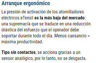 La centralidad de la ergonomía siempre ha sido un punto fuerte de las soluciones desarrolladas por Fiam. Los atornilladores eléctricos eTensil han sido diseñados para reducir la fatiga del operador y aumentar el rendimiento productivo.