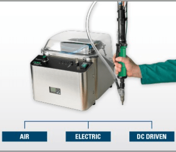 Para atornillar con productividad las series medianas y grandes de tornillos o tuercas: el tornillo se envía automáticamente al dispositivo de retención del tornillo en el cabezal del atornillador y es posible atornillarlo de inmediato. Facilitan el trabajo, porque se eliminan las etapas manuales de coger el tornillo o tuerca y colocarlos en la punta del atornillador o en la pieza, reduciendo radicalmente los tiempos de ciclo de atornillado