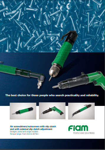 Diseñados y fabricados por Fiam, estos atornilladores neumáticos industriales aseguran el funcionamiento regular en cualquier condición de trabajo, en cualquier tipo de acoplamiento y con cualquier elemento roscado. Gracias al sistema de control del par con embrague deslizante son extremadamente versátiles: es el operador el que decide en que momento termina el proceso de atornillado.