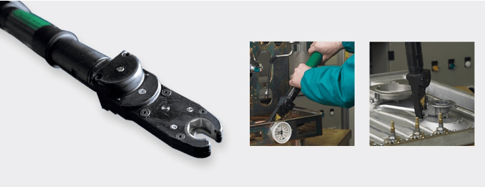 Los cabezales especiales se adaptan a diferentes situaciones de ensamblaje: su abertura radial permite que el tubo pase por adentro del casquillo hexagonal, de modo que se pueda alcanzar fácilmente la tuerca a enroscar. La abertura radial de los cabezales permiten el paso del tubo dentro del hexágono interior, llegar fácilmente a la tuerca y atornillar sin esfuerzo. Los cabezales robustos son los únicos en el mercado, con posibilidad de combinar engranajes terminales de tipos diferentes. También prolongados, para evitar daños en los componentes.